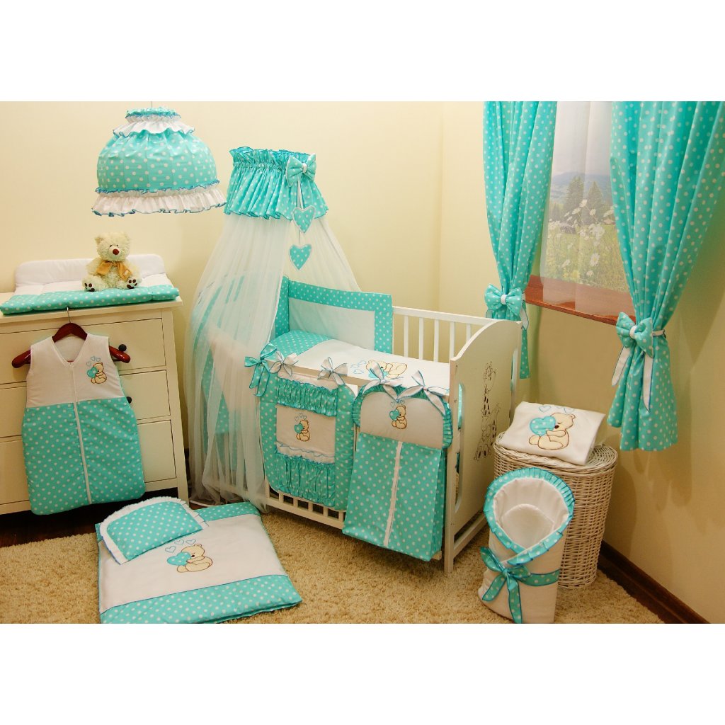 Šířka baldachýnu je 320cm a výška 170 cm. Vyrobený z barevného šifonu, který nebere dítěti světlo a zároveň je prodyšný. Horní část je vyrobena z barevné 100% bavlny, která je ušitá ze vzorů lůžkoviny Bello. Celá je dokola oblemována ze stejného materiálu. Baldachýn je možné připevnit ze kterékoli strany postýlky.