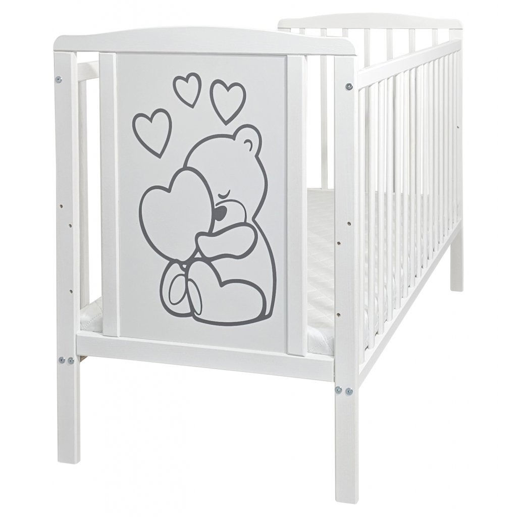 18. Bílá dětská postýlka z borového dřeva s medvědem. Dětská postýlka natřená bíle je klasika, která vždy funguje. Zaprvé se hodí do každého interiéru a je univerzální - tuto dětskou postýlku můžete s úspěchem použít pro svého syna nebo dceru. Tento model je také ceněn pro svou výjimečně snadnou montáž, která vám zabere jen něco přes deset minut. Když v něm batole bude spát, jistě se bude cítit pohodlně a mezery mezi tyčkami mu také umožní svobodně dýchat a pozorovat okolí. Vsaďte na osvědčenou bílou dětskou postýlku, vyrobenou v Polsku. Bílá dřevěná dětská postýlka, kterou nabízíme, se vyznačuje mimořádnou pevností a odolností. Byla vyrobena z borového dřeva a natřena certifikovaným vodním lakem bez zápachu, díky němuž je zcela bezpečná a stabilní. Bílá dětská postýlka s potiskem plyšového medvídka vám umožňuje zvolit si výšku, v jaké má dítě spát od podlahy - jsou 3 úrovně: 20 cm, 35 cm a 50 cm od podlahy. Další výhodou je možnost vytáhnout tři tyčky, aby dítě mohlo v budoucnu opustit postýlku samo.